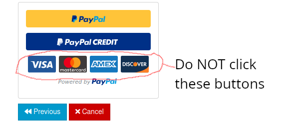 There is currently a bug in our event system for those paying by credit card WITHOUT using a PayPal account. Use the following instructions to get around this bug.