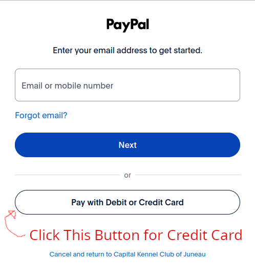 - Then at the PayPal popup window click the "Pay with Debit or Credit Card" button.